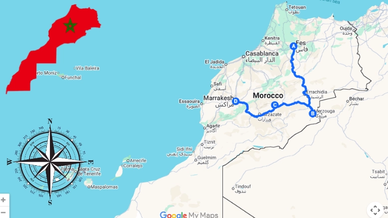 This 4 Days Tour from Fes to Marrakech is an unforgettable journey through Morocco’s most iconic landscapes. Traveling from Fes to Marrakech, you will cross the Middle Atlas Mountains, explore the lush Ziz Valley, and experience the magic of the Sahara Desert in Merzouga with camel trekking and a night in a luxury desert camp. The 4 days desert tour from Fes to Marrakech continues through Erfoud, Todra Gorges, and the Dades Valley before visiting the UNESCO-listed Ait Ben Haddou and crossing the High Atlas Mountains via Tizi n’Tichka Pass. This Fes to Marrakech desert tour 4 days perfectly combines desert adventure, culture, and breathtaking scenery.